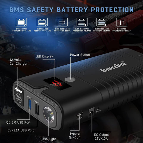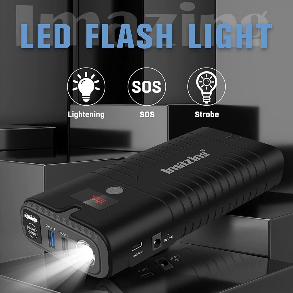 Con la potencia de este Car Jump Starter Portátil de 200A es mas que suficiente para encender el motor de un auto 10L o de hasta un motor diesel de 8L.